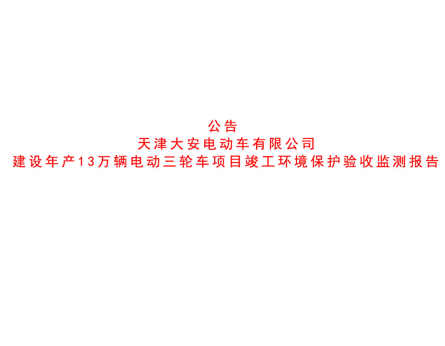 公司動態(tài) 天津大安電動車有限公司建設(shè)年產(chǎn)13萬輛電動三輪車項目竣工環(huán)境保護(hù)驗收監(jiān)測報告